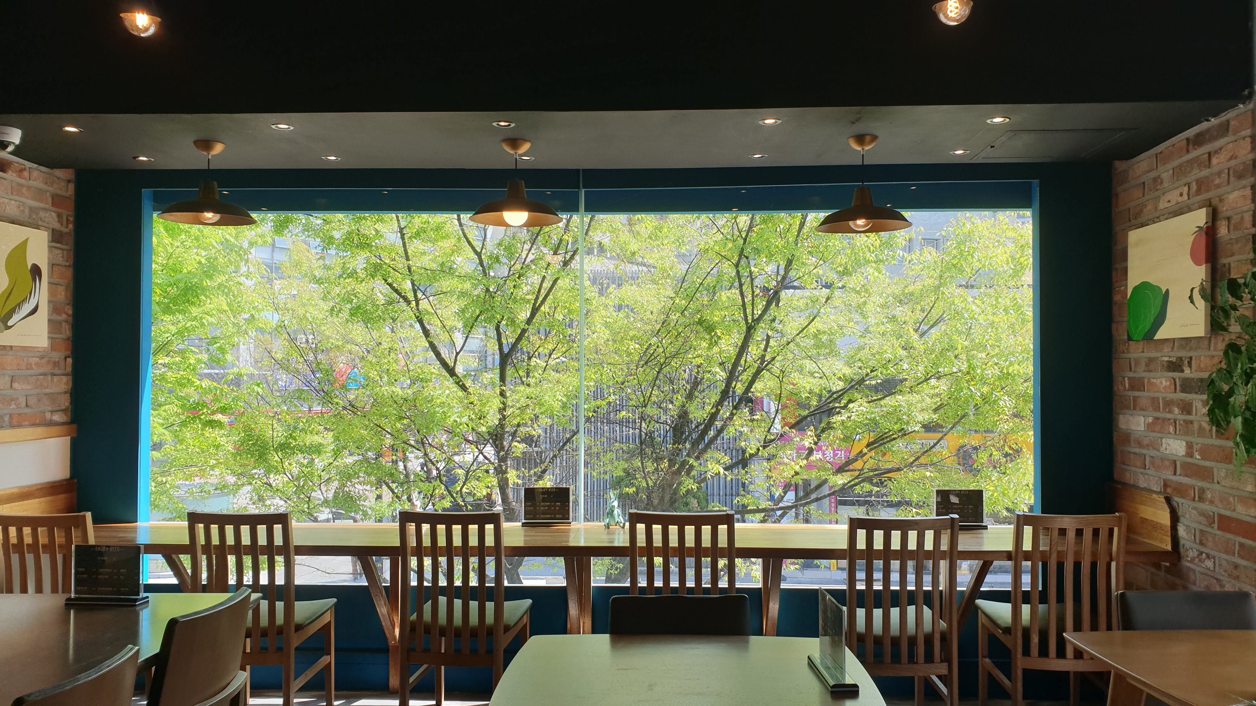 1층에서 주문하고 2층으로 올라가면 이렇게 초록 초록한 예쁜 창이 :)